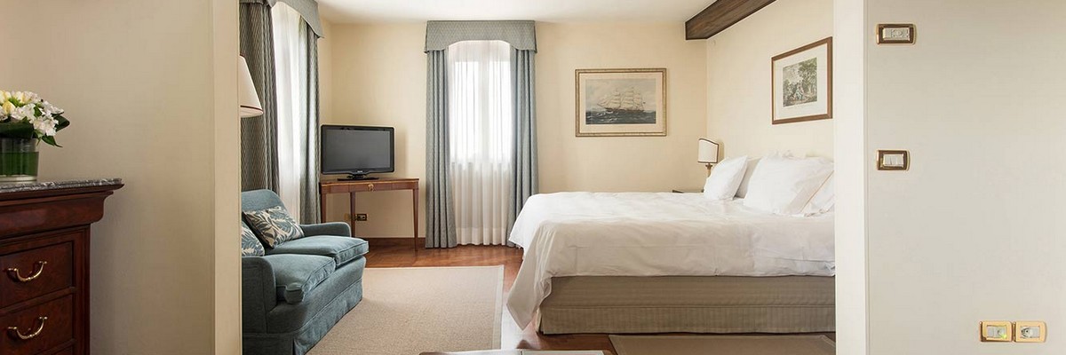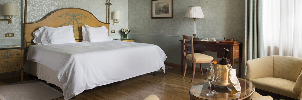King-size beds - Hypo-allergenic pillows - Mini bar - Writing desk - Safe - Satellite TV - Direct-dial telephone - Wi-Fi - Air conditioning - Bathrobes - Slippers - Weighing scales - Magnifying mirror - Toiletries by Acca Kappa