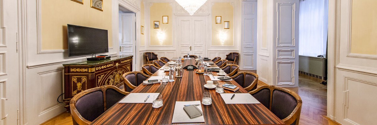 The striking Ring Suite has become a favorite spot for our guests to hold private business meetings, informal talks, and press conferences. The main reason for this is the discreet, personal atmosphere offered at our hotel. The Ring Suite features a large conference table and its extensive space makes it ideal for all kinds of meetings. As well as the meeting space, we also offer technical equipment, catering and security – whatever you need to ensure your business meeting or conference is a success!