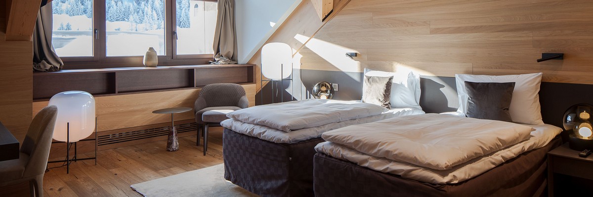 Families in particular will feel at home in our Deluxe Suites. The Deluxe Suites offer 110 square metres of ideally planned space and are thus the perfect place to spend time with the entire family. They feature a stylish seating area as well as an extensive living area inviting you to linger and play. This lavish space oozes a sense of luxurious calm and allows you to just enjoy being together among the traditional Alpine woods, warm natural stone or snuggled up in fluffy Cashmere blankets. Depending on where your Deluxe Suite is located, the picture windows may afford you a view of the Urseren Valley, the Gemsstock Mountain, the Nätschen Mountain or the Schöllenen Gorge. The impressive mountain world is not the only thing that will capture your heart. Some Deluxe Suites also feature a glass wine cabinet that will be stocked for your pleasure – a highlight indeed for wine lovers.